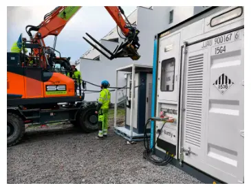 Устройство Atlas Copco Fast Charger работает с контейнерной системой хранения энергии ZBC для питания электрического экскаватора.