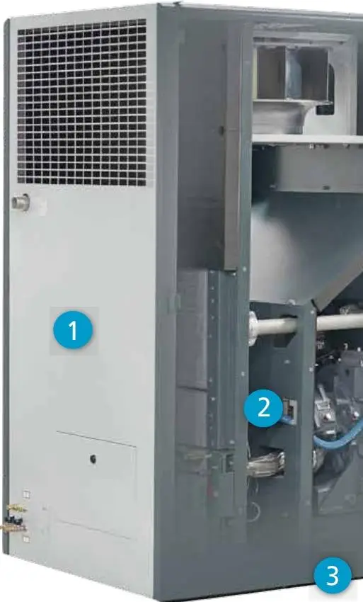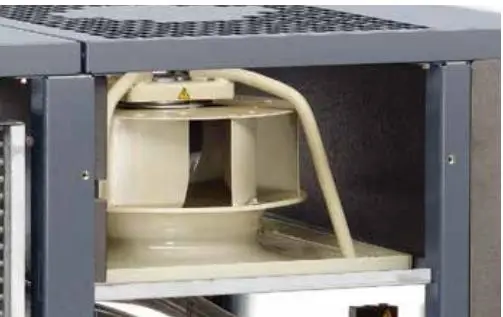 Охладитель расположен вертикально, что значительно снижает шум, издаваемый вентилятором, двигателем и ротором.