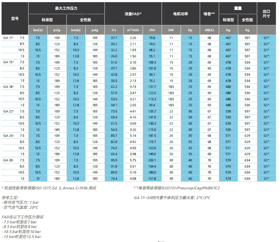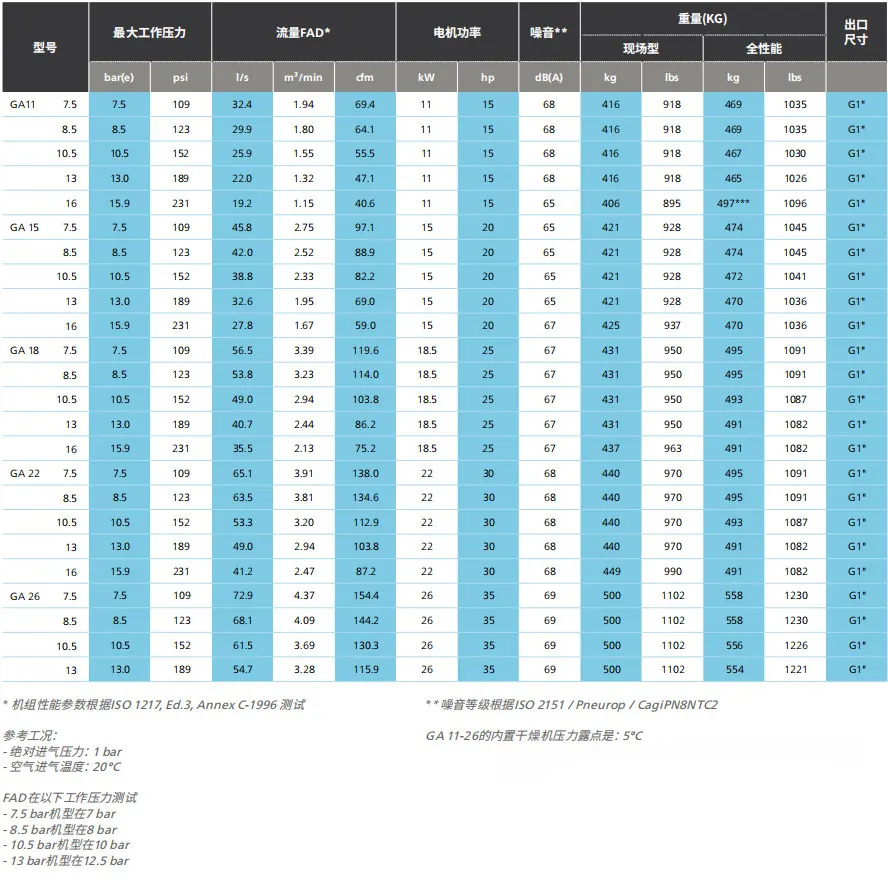 ·GA11-26 использует новый ротор и высокоэффективный двигатель IE2/IE3, который отличается долговечностью и эффективностью.