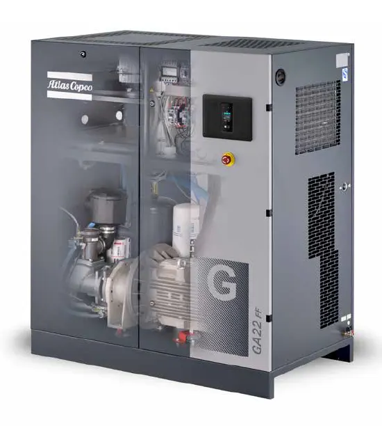 ·Винтовой компрессор с впрыском масла использует приводную систему Atlas Copco и эффективную коробку передач, что обеспечивает очень высокую надежность.