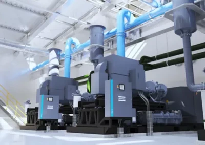Помимо энергоэффективной конструкции основного блока, наш одноступенчатый турбокомпрессор можно комбинировать с блоком рекуперации энергии и центральным контроллером и/или блоком управления, чтобы еще больше снизить выбросы углекислого газа в вашем производственном процессе: